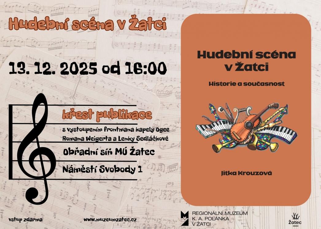 Regionální muzeum K. A. Polánka v Žatci chystá slavnostní křest nové publikace s názvem Hudební scéna v Žatci. Akce se uskuteční v sobotu 13. prosince od 16 hodin v obřadní síni Městského úřadu v Žatci (radnice) s hudebním vystoupením frontmana kapely Ogee Romana Weigerta a Lenky Sedláčkové.