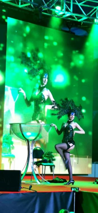 Vystoupení trvá 10minut a je možné zapojit i obří skleničku na Burlesku a prodloužit představení.