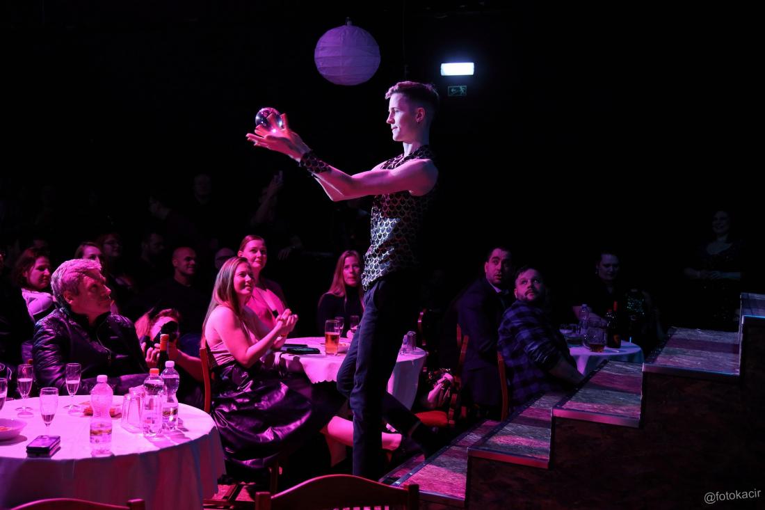 Koule se plynule pohybují po rukou, těle i ve vzduchu a vytvářejí silný vizuální efekt bez jazykové bariéry.